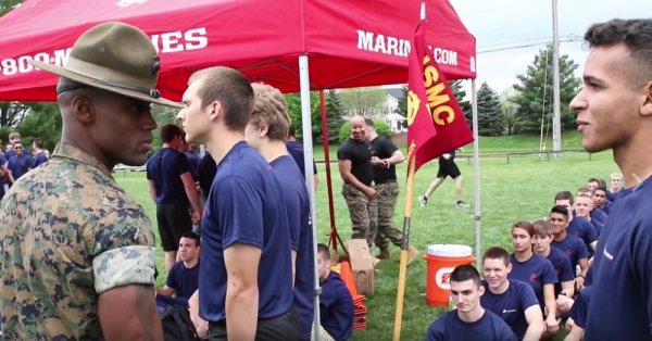 In a video posted by Marine Corps Recruiting Station Frederick in Maryland, civilians attempting to join the Marine Corps, called poolees, came face to face with Marine Corps drill instructors at Ballenger Creek Park, Frederick, Maryland on April 23.