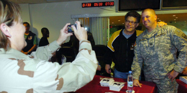 The incident occurred on a stop of the USO Sergeant Major of the Army Hope and Freedom Live Show, which visited Kuwait and Afghanistan. Franken, a veteran of numerous USO shows since 1999, had billed the tour as being “in the tradition of Bob Hope.” He’d added: “Leeann Tweeden and I will host this event and it will include some mild political satire.”