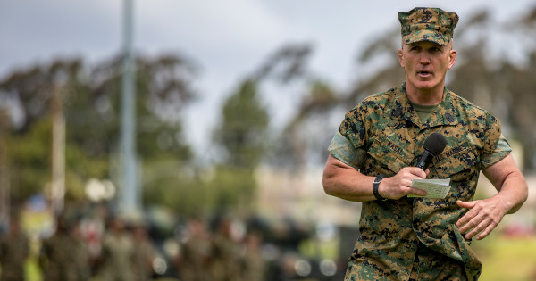 “I am so proud of these Marines and Sailors, I could speak forever,” he said of the 53,000 or so Marines and Sailors that make up 1 MEF. “All these great Americans left their home and signed up during a time of war, signed up, and said ‘I want to do that.’ … I am so proud.”