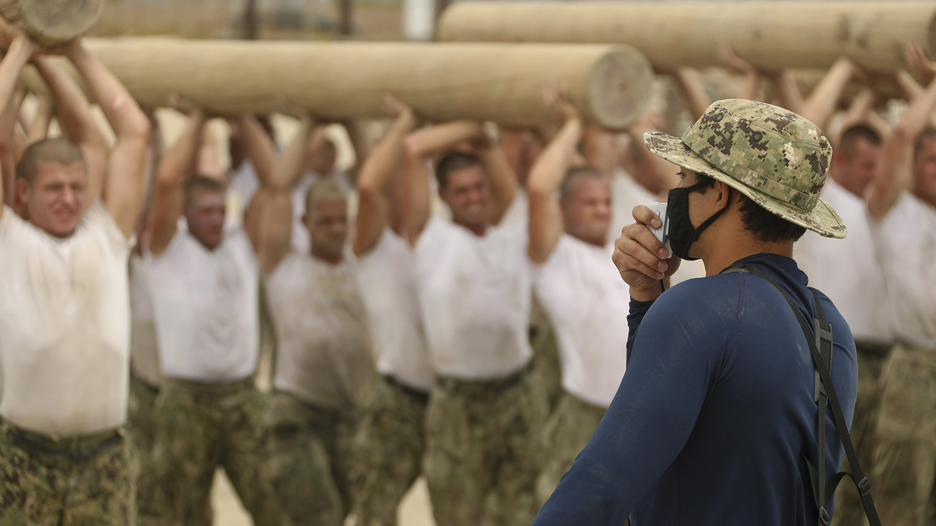 Featured image: A Basic Underwater Demolition/SEAL (BUD/S) instructor directs SEAL candidates participating in strength and conditioning training with logs at Naval Special Warfare (NSW) Center in Coronado, Calif., May 18, 2020. (U.S. Navy Photo by Mass Communication Specialist 1st Class Anthony W. Walker.)