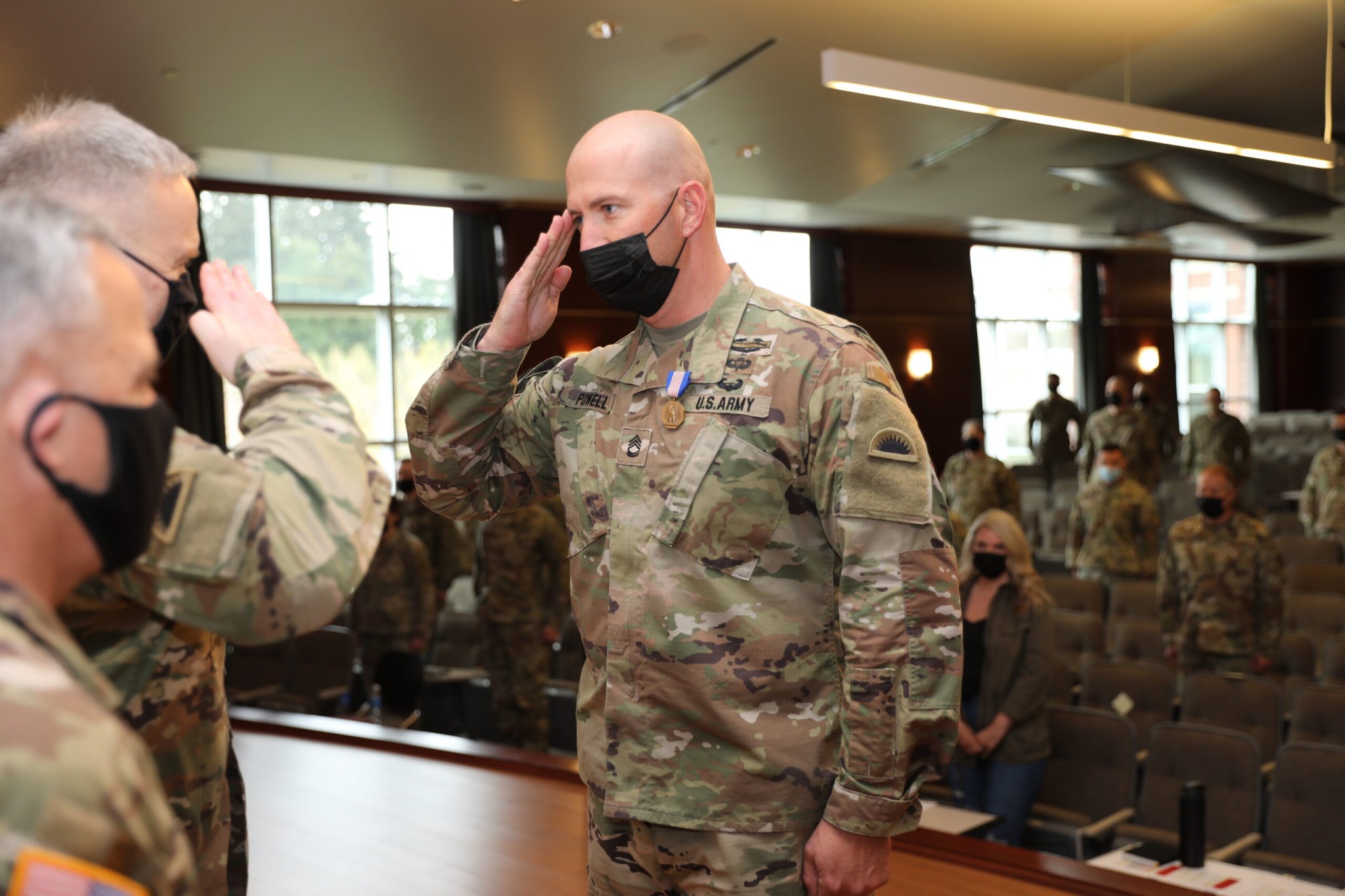 Eventually, Powell’s Soldier’s Medal was awarded in December, but his unit was still operating under COVID-19 restrictions, Bomar said. That’s why Powell received the award at a ceremony this month, when the unit was able to hold one of its first non-virtual drills in a long time.