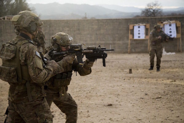 U.S. Army Rangers from B Company, 2nd Battalion, 75th Ranger Regiment, fire M-4 Carbines, Special Operations Forces Combat Assault Rifle (SCAR), and Mk46 machine guns during a close-quarter marksmanship range in Fort Hunter Liggett, Calif., Jan. 25, 2014. (Spc. Steven Hitchcock/U.S. Army).