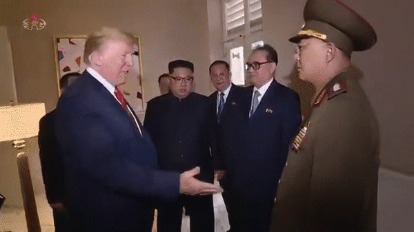 So let’s not judge President Donald Trump too harshly for doing what apparently came naturally when a uniformed, covered North Korean officer saluted the U.S. president, as shown in the communist state-run media’s video at the top of this post, 55 seconds in: He saluted back.