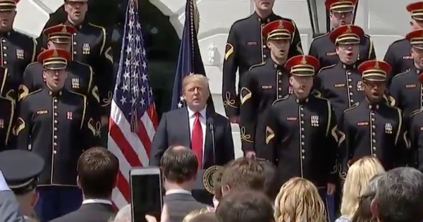 WATCH: President Trump sings along to "God Bless America" with United States Army Chorus. https://t.co/fKugAch7FH pic.twitter.com/vQJXNGxG0I