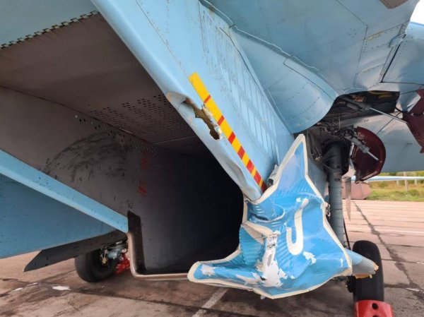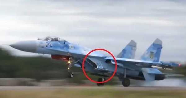 Details of the incident are scarce, but video that aired on Ukrainian television and began circulating on social media on Thursday, one of the fighters appears to miscalculate during a landing, tearing a road sign from the highway.