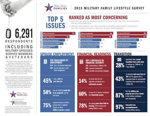 The survey, which was fielded in April and May 2015, was designed by Blue Star Families in collaboration with Syracuse University’s Institute for Veterans and Military Families.
