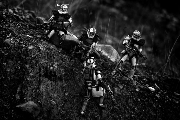 Callahan is currently attending photojournalism training at Syracuse University as part of a Department of Defense program there. Outside of his studies and his work with the Marine Corps, Callahan has started this Star Wars project. Callahan’s work does not just create a life-like and moving scene from a plastic toy, it presents a humanity to the faceless Storm Troopers and other characters that, for decades, have been faceless icons in the American consciousness. With an infantry Marine’s perspective and a talented photographer’s skills, Callahan creates spectacular battle scenes and portraits of the fighters.