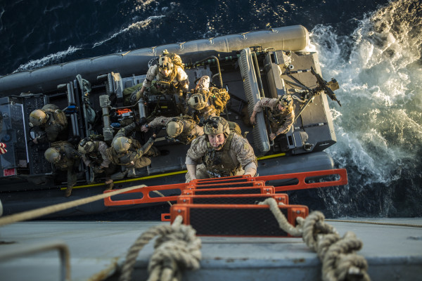 For example, Sgt. Adam Dublinske scored first in the feature photo category for this downward-facing shot of Sgt. Chad Martinell, a reconnaissance Marine on the 11th Marine Expeditionary Unit, as he climbed a ladder up the side of the USS Harpers Ferry while conducting ship search and seizure operations.