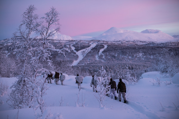 Though it seems like a painting from Bob Ross — the former airman-turned famous painter with an afro who never makes mistakes (just “happy little accidents”) — the photo shows U.S. Marines and Norwegian Army soldiers conducting cold weather training in Setermoen, Norway in Jan. 2019.