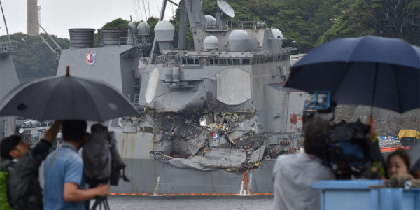 If human error was truly the cause, as the CNN report suggests, it’s a costly mistake. Not only were the lives of seven sailors lost in the crash, but the collision tore a monstrous hole in the starboard side of the Arleigh Burke-class destroyer, evidenced by stunning photos published July 12 of the vessel at the Navy’s dry dock facility in Yokosuka, Japan.