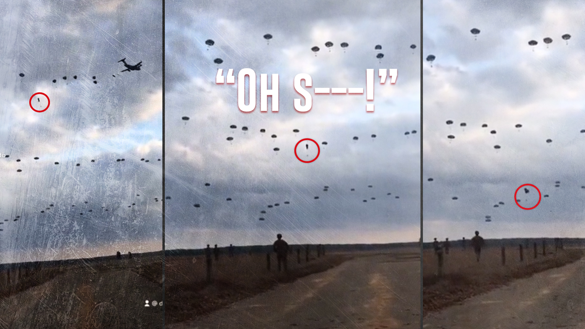 Immediately after the 33-second clip begins, one of the paratroopers starts picking up speed and begins falling faster than the other jumpers. The soldier’s chute, unlike the others dotting the sky, looks like a deflated balloon. As the paratrooper in the video plummets toward the ground, the moment is perfectly summed up by someone offscreen: “Oh shit!”