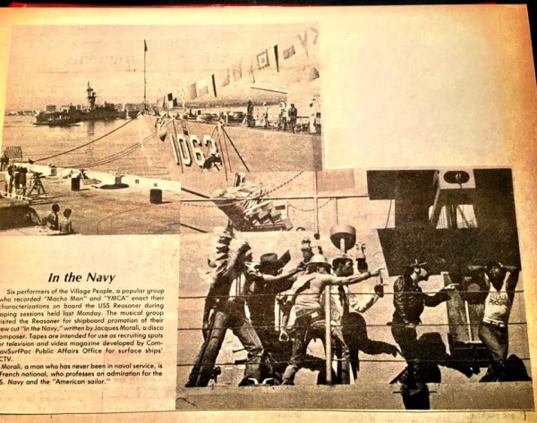 The infamous video, shot aboard the Reasoner 40 years ago this year, was originally intended as a recruiting video. With the popularity of The Village People’s ‘Macho Man’ and ‘YMCA,’ tying the post-Vietnam blue water force to one of the hottest acts in entertainment seemed like a no-brainer for Navy public affairs officials with the Commander Naval Surface Force, U.S. Pacific Fleet, who contacted Village People co-founder Henri Belolo (who died this year) about shooting a music video aboard a Navy vessel.