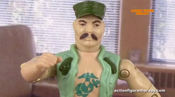 The video is vulgar and not at all safe for any respectable work environment and an absolute caricature of military service, delivered by an action figure with an Eagle, Globe, and Anchor tattoo on his chest, and the most out of regulations mustache we’ve ever seen on any Marine, real or figurine.