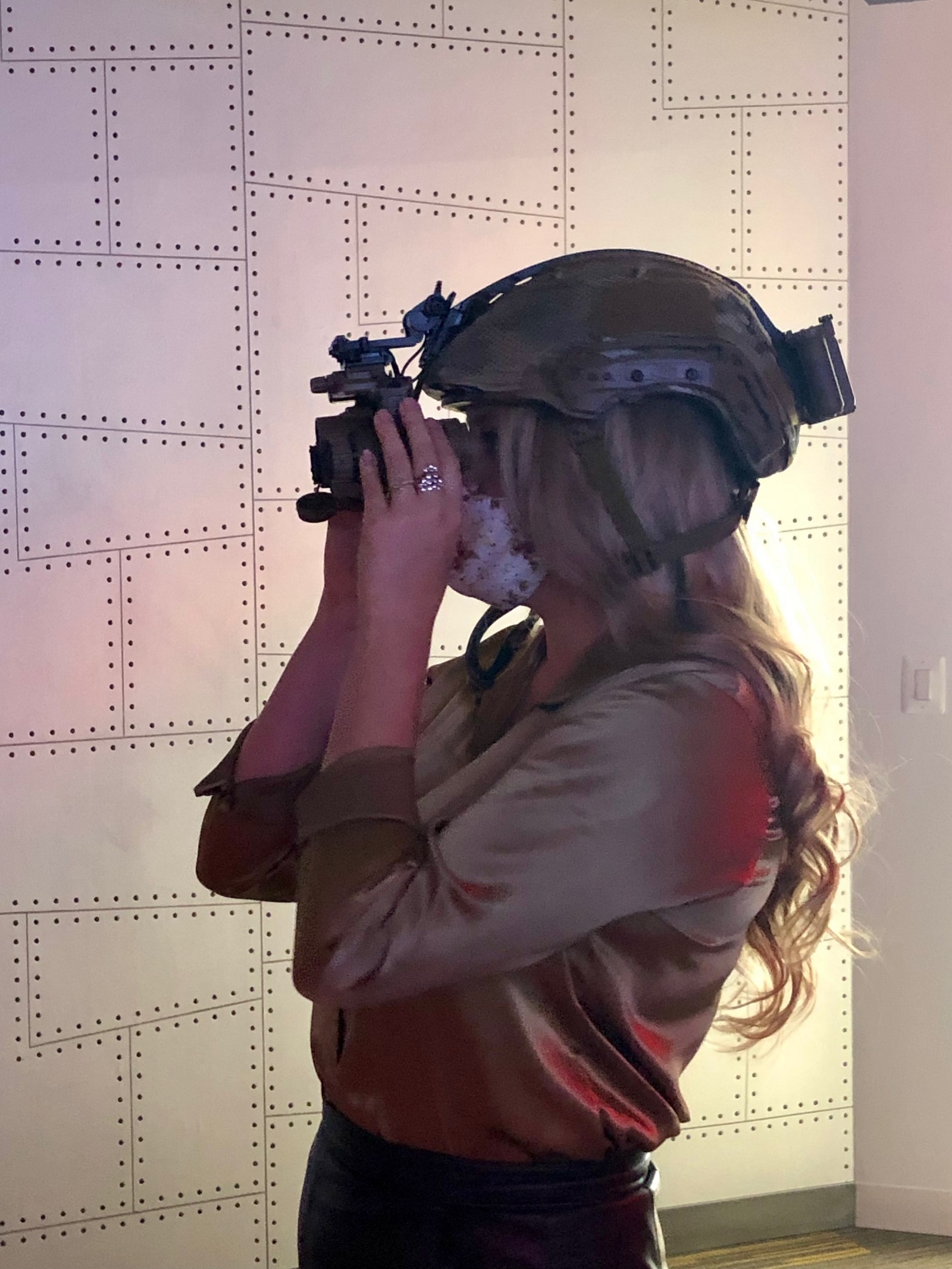 Task & Purpose Army reporter Haley Britzky rocking the ENVG-Bs as she prepares to set off on a night-op in search of scoops. (Courtesy photo)