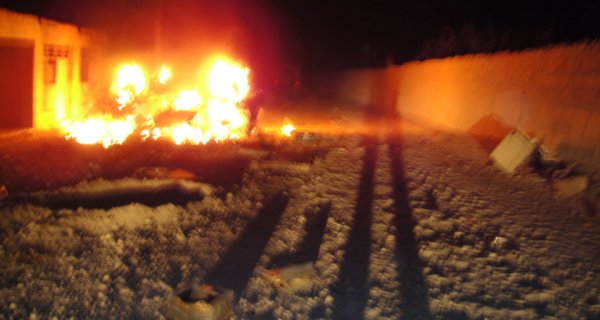 After the downrange glamour shots, there’s a photo of a slimmed-down HUMVEE variant, then a close-up of the position in the truck he’d man while on patrol, then another shot showing the vehicle in a burning heap.