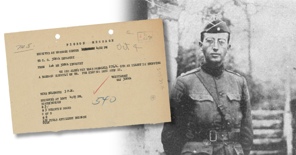 This was long before sophisticated communications systems. So Whittlesey resorted to the radio of the day: a carrier pigeon named Cher Ami.