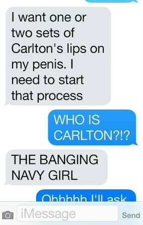 “I want one or both sets of Carlton’s lips on my penis, I need to start this process,” the message read.