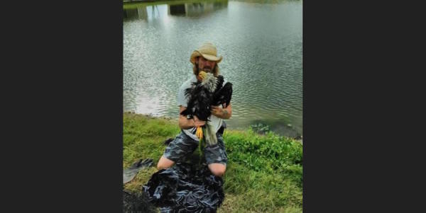 When David Anderson saw this he jumped into action, wading through a pond and prying the bald eagle from the alligator’s jaws.