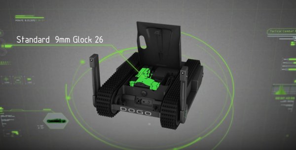 DOGO is controlled via a so-called Ranger remote control unit that allows the user to remain at a safe distance from the target he intends to shoot. The robot is equipped with eight micro-video cameras that offer a 360-degree view of the objective, as well as two boresight cameras for firing the pistol.