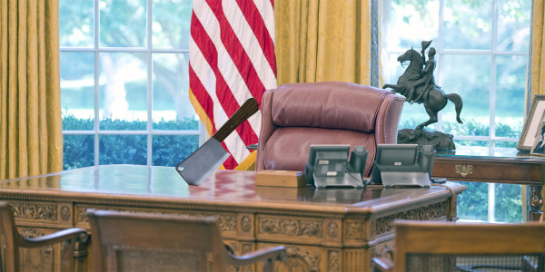 So I got to thinking last night, as I do every couple of years: What if, in order to access the codes he needs to authenticate his identity and order a launch of nuclear missiles, the president of the United States of America had to personally kill a man with a meat cleaver?